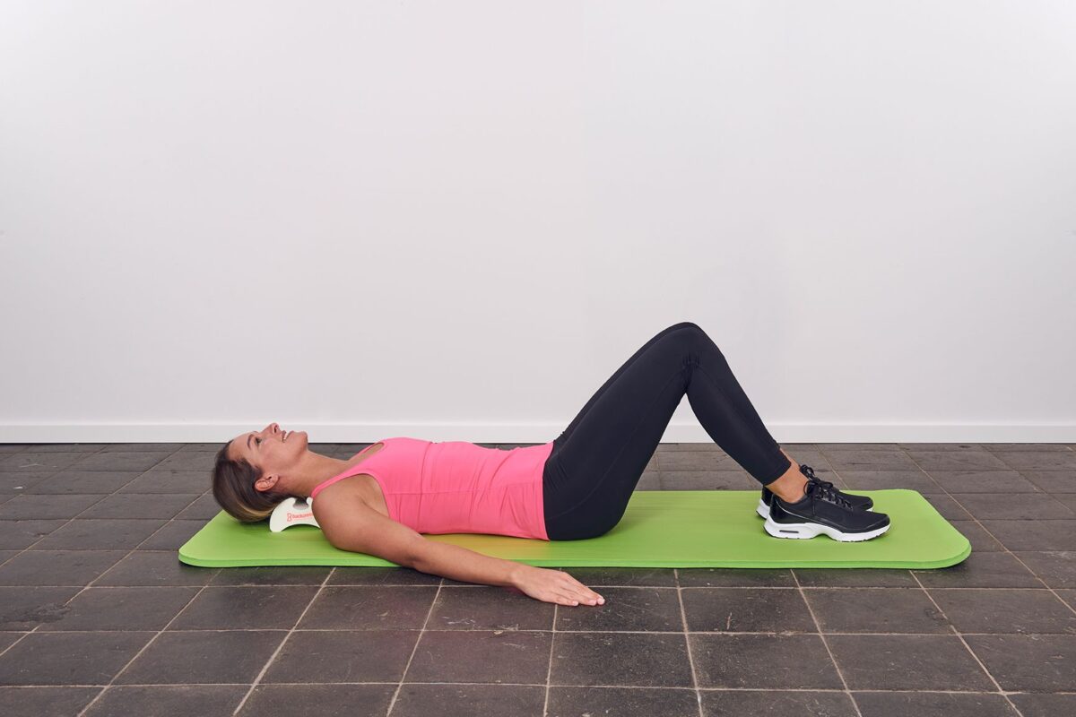 Bei dieser Übung wird die Beinlängendifferenz, die Brustbeinsenkung sowie ein möglicher Schulterschiefstand durch gezielte Streckung der Wirbesläule korrigiert.